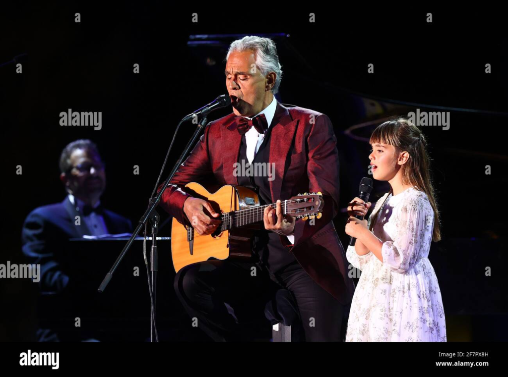 As they sang, the connection between father and daughter became impossible to ignore. Bocelli’s subtle glances toward Virginia carried a quiet pride—the kind that doesn’t need words. Virginia, in turn, sang with a focus that reflected both discipline and childlike wonder. She wasn’t trying to match him. She wasn’t trying to impress anyone. She was simply present.